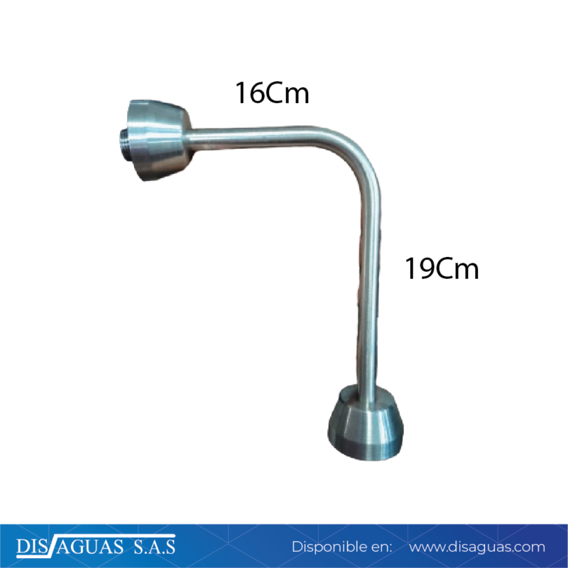 Curva en acero inoxidable 304 con medidas de 16 x 19Cms con escudos cónicos para adaptar a orinales institucionales de alimentación o conexión superior.