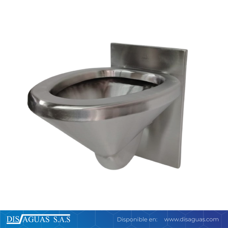 Sanitario con suministro y desagüe a pared. Fabricado en lamina de acero inoxidable (AISI 304) calibre 16. Compuesto por: Sanitario a pared de colgar, y un tanque de acumulación de agua con sistema de vaciado externo en pasillo de inspección. Accionamiento de la descarga mediante botón Push Levi.